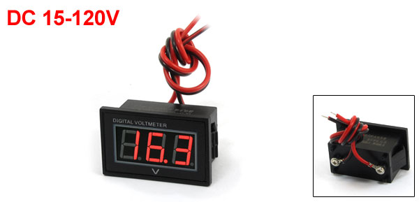 Product Name Waterproof Digital Voltmeter Model V40D Display 3 Digits Red LED Voltage Range DC 15-120V Total Size 41 x 25 x 23mm/ 1.6" x 1" x 0.9"(L*W*T) Mounting Size 40 x 19mm/ 1.6" x 0.75"(L*W) Cable Length 20cm / 7.9" External Material Plastic Main Color Black Weight 23g Package Content 1 x Waterproof Digital Voltmeter - Reviews