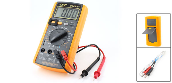 Product Name Multitester Model VC890C+ DC Voltage 200mV-2V-20V-200V-1000V AC Voltage 2V-20V-200V-750V DC Current 2mA-20mA-200mA-10A AC Current 2mA-20mA-200mA-10A Resistance(ohm) 200-2k-20k-200k- 2M-20M-200M Capacitance 20nF-200nF-2uF-20uF-200uF Temperature -40 to 1000 Centigrade Power Supply 1 x 9V Battery(NEDA 1604, 6F22, etc)(Battery Not included)