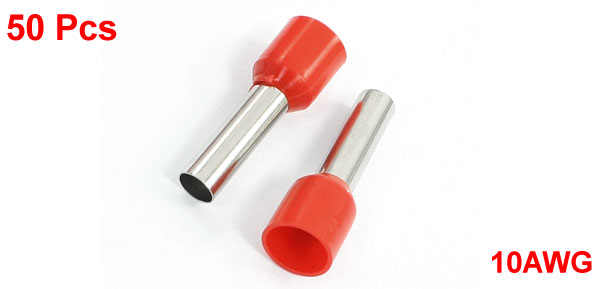 Product Name Pipe Pre-insulated Terminal Model VE6012 Fit for Cable 6mm2 10AWG Overall Size 20 x 6 x 7mm/0.78" x 0.24" x 0.28"(L*Inner Dia*OD) Tube Size 12 x 4mm/0.37'' x 0.07''(L*OD) Materials Plastic, Metal Main Color Red, Silver Tone Net Weight 18g Package Content 50 (±2%)Pcs x Pipe Pre-insulated Terminal - Reviews