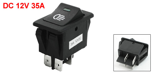 Product Name Fog Light Switch Position On-Off Terminals Number 4 Rating Voltage & Current DC 12V 35A Indicator Light Color Green Size 38 x 22 x 41mm/1.5" x 0.9" x 1.6" (L*W*H) Color Black Material Plastic, Metal Weight 17g Package Content 1 x Fog Light Switch - Reviews