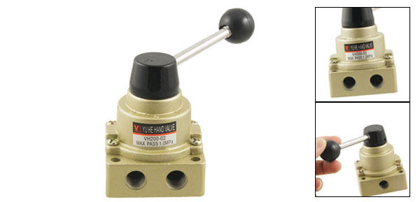 Product Name Hand Lever Valve Model VH200-02 Position and Way No. 3 Position 4 Way Working Medium Air Action Type Rotary Lever Pipe Thread Diameter 12mm Pipe Size 1/4 PT Working Pressure 1.0MPa Ball Diameter 24mm / 0.94" Fixing Hole Diameter 6mm / 0.23" Body Size 62 x 62 x 82mm / 2.4" x 2.4" x 3.2" (L*W*H) Lever Size 74 x 7mm / 2.9" x 0.27" (L*D) Material Plastic, Metal Net Weight 301g Package Content 1 x Hand Lever Valve - Reviews