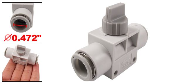 Product Name Hand Valve Model VHK2-12F-12F For Tube OD 12mm / 0.472" Overall Size(Approx) 62 x 22 x 45mm / 2.4" x 0.8" x 1.8"(L*W*H) External Material Plastic Color Gray Net Weight 31g Package Content 1 x Hand Valve - Reviews
