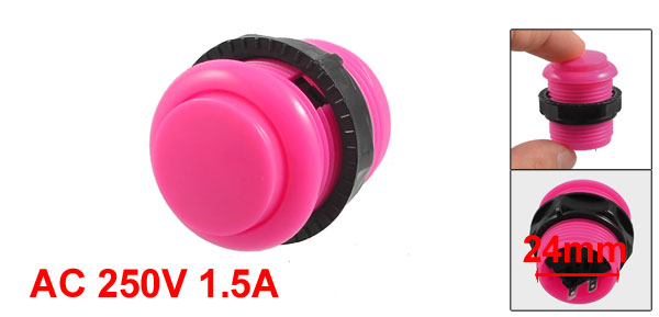 Product Name Arcade Game Push Button Action Type Momentary Rated Voltage & Current AC 250V 1.5A Pin Number 2 Mounting Hole Diameter 24mm / 0.94" Soldering Distance(center to center) 5mm / 0.2" Button Head Diameter 19mm / 0.75" Total Size 30 x 34mm / 1.18'' x 1.3''(Max.D*H) External Material Plastic Color Hot Pink Net Weight 9g Package Content 1 x Arcade Game Push Button - Reviews