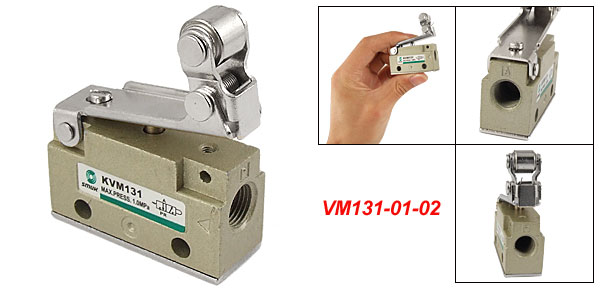 Product Name Mechanical Valve Model VM131-01-02 Button Type Unidirection Lever Roller Control Type Mechanical Control Medium 40 Micron Filtered Air Position and Way No. 2 / 3 Fit Pipe Size RC 1/8 Port Size 8.2mm/0.32" Install Hole Diameter 4.3mm/0.17" Operating Temperature Range