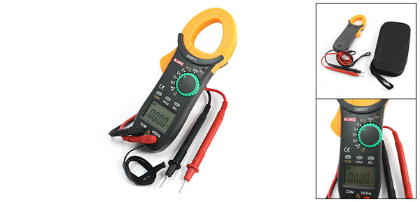 DetailsVolt Current Resistance Frequency Digital Clamp Multimeter w Test Lead  Product Name Digital Clamp Multimeter Model 3266TC AC Current 40A/400A, ±(2.5%+5) AC Voltage 400mV/4V/40V/400V/600V, ±(1.2%+5) DC Voltage 200mV/2V/20V/200V/600, ±(0.8%+5) Resistor 400/40K/400K/4M/40M, ±(1.2%+5) Frequency10Hz/100Hz/1KHz/10KHz/100KHz/1MHz/10MHz, ±(0.5%+5) Power Supply 2 x 1.5V AAA Batteries(Not Included Here) Clamp Meter Size 18.5 x 6.5 x 2.8cm/ 7.3" x 2.6" x 1.1"(L*W*T) Mateiral Plastic, Electronic Parts Main Color Iron-gray, Orange Total Weight 325g Package Content 1 x Digital Clamp Multimeter 1 x Testing Lead 1 x Handheld Bag