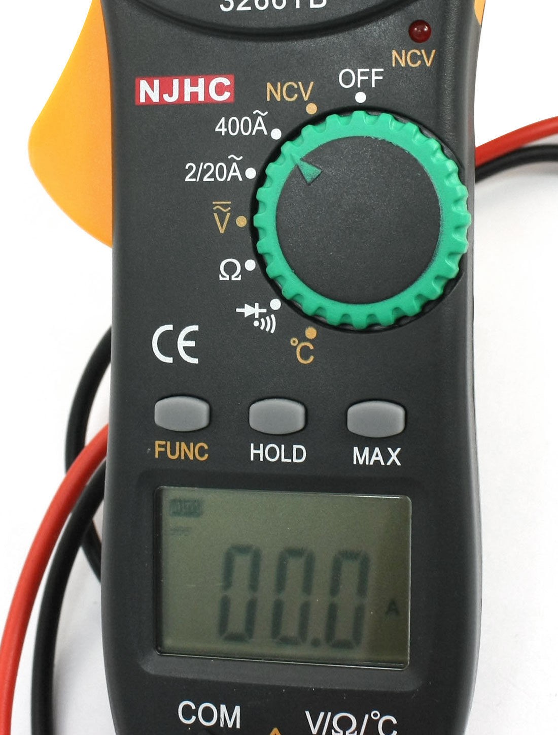 Product Name Digital Clamp Multimeter Model 3266TB AC Current 2A/20A/200A/400A, +/-(2%+5) AC Voltage 2V/20V/200V/600V, +/-(1.2%+5) DC Voltage 200mV/2V/20V/200V/600V, +/-(0.8%+5) Resistor 200/20K/200K/2M/20M, +/-(1.2%+5) Temperature -20Degree-+750Degree, +/-(3%+5) Power Supply 2 x 1.5V AAA Batteries(Not Included Here) Clamp Meter Size 18.5 x 6.5 x 2.8cm/ 7.3" x 2.6" x 1.1"(L*W*T) Mateiral Plastic, Electronic Parts Main Color Iron-gray, Orange Total Weight 332g Package Content 1 x Digital Clamp Multimeter