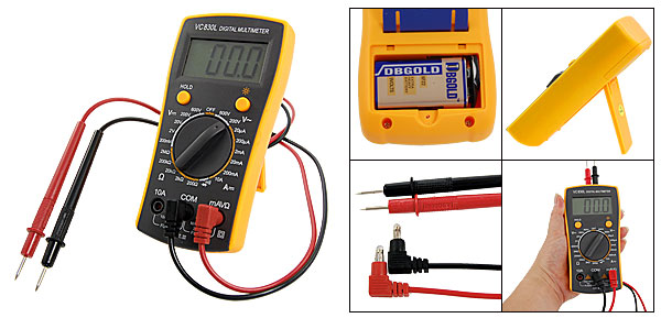 Product Name Digital Multitester DC Voltage 200mV-2V-20V-200V-600V AC Voltage 200V-600V DC Current 20uA-200uA-2mA-20mA-200mA-10A Resistance 200 ohm-2k ohm -20k ohm-200k ohm-2M ohm Power 1 x 9V NEDA1604/ 6F22 Batteries (Here is not included) Color Gray, Orange Size 145 x 85 x 30mm / 5.7" x 3.3" x 1.2" (L * W * T) Test Lead Length 730mm / 28.7" Weight 166g Package Content 1 x Digital Multitester