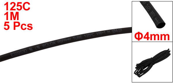 VW-1 4mm Dia Black Polyolefin Heat Shrinkable Shrink Tubing Tube 1M Long 5 Pcs