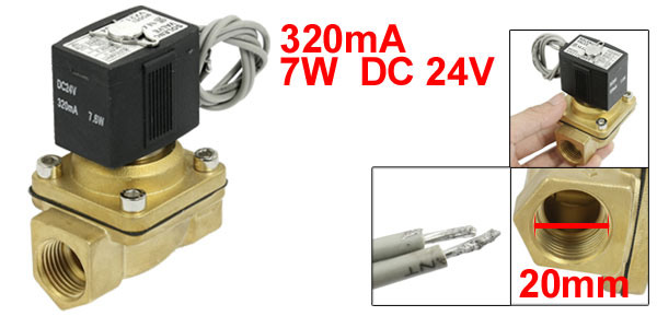 Product Name Solenoid Valve Model VX2020-15 Type Two-position, Two-way Use Fluid Air, Water, Oil, Gas Flow Pore Size 20mm CV Value 7.6 Joint Pipe Bore 1/2" Fluid Viscosity <20CST Pressure 0~10kg/cm2 Operating Temperature -5 ~ 80 Degree Centigrade Current 320mA Power 7W Voltage DC 24V Total Size 9 x 6.5 x 5cm/ 3.5" x 2.6" x 2"(L*W*H) Cable Length 30cm/11.8'' External Material Metal Color Black, Gold Tone Net Weight 552g Package Content 1 x Solenoid Valve - Reviews