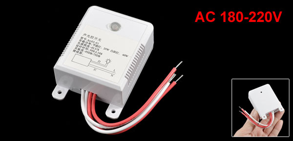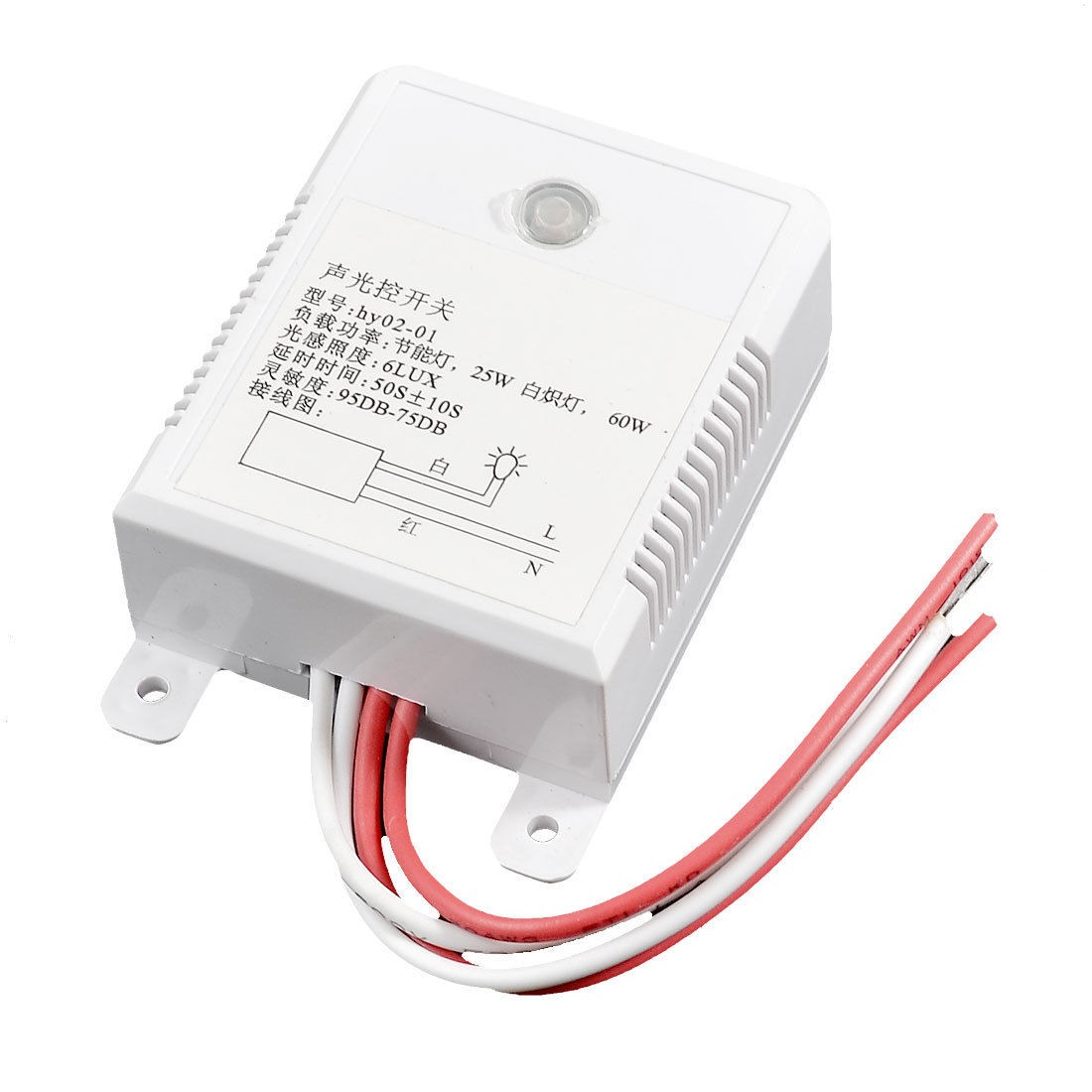 Product Name Sound Light Sensor Switch Color White Working Voltage AC 180-220V, 50Hz Load Power 25W, 60W Sound Sensitivity 75dB-95dB Light Sensitivity 6 Lux Delay Time 60s ± 10s Size(approx.) 6 x 5 x 2.5cm/2.4" x 2 x 0.9"(K*W*H) Cable Length 9cm/3.5" Hole Dia. 3mm/0.12" Casing Material Plastic Weight 35g Package Content 1 x Sound Light Sensor Switch - Reviews