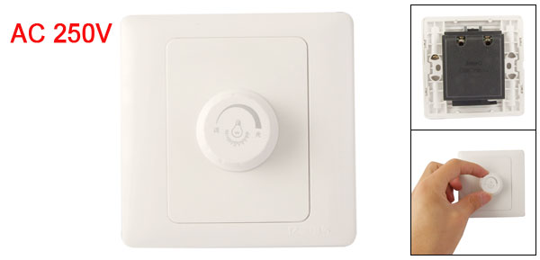Product Name Dimmer Switch Material Plastic Color White Power 630W Voltage AC 250V Frequency 50/60 Hz Total Size 8.7 x 8.7 x 4.6cm/3.4'' x 3.4'' x 1.8''(L*W*T) Weight 91g Package Content 1x Dimmer Switch