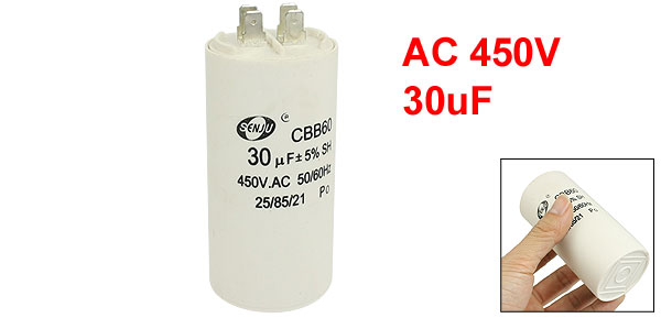 Product Name Motor Capacitor Material Polypropylene Film Model CBB60 Capacitance 30uF Tolerance ±5% Rated Voltage AC 450V Frequency 50/60Hz Body Size 42 x 93mm/ 1.7" x 3.7" (D*H) Color White Weight 156g Package Content 1 x Motor Capacitor - Reviews