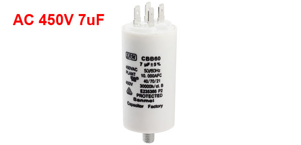 Product Name Motor Capacitor Material Polypropylene Film Model CBB60 Capacitance 7uF Tolerance ±5% Rated Voltage AC 450V Frequency 50/60Hz Body Size 34 x 92mm/ 1.3" x 3.6" (D*H) Color White Weight 66g Package Content 1 x Motor Capacitor - Reviews