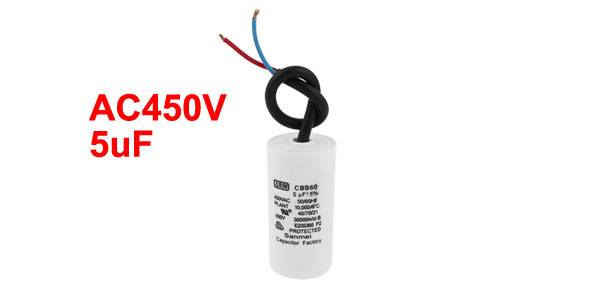 Washing Machine CBB60 AC450V 5uF 5% Wired Motor Run Capacitor