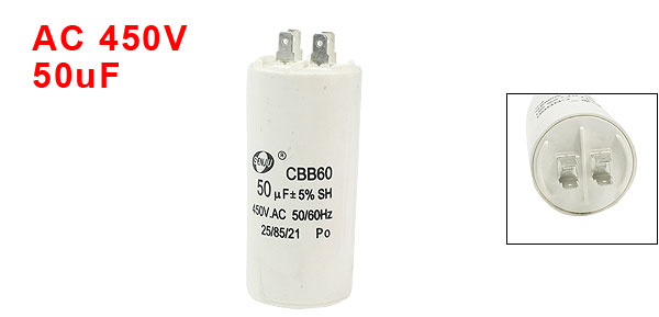 Product Name Motor Capacitor Material Polypropylene Film Model CBB60 Capacitance 50uF Tolerance +/-5% Rated Voltage AC 450V Frequency 50/60Hz Body Size 45 x 92mm/ 1.7" x 3.6" (D * H) Color White Weight 135g Package Content 1 x Motor Capacitor - Reviews