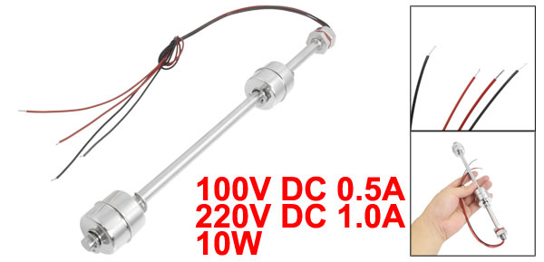 Product Name Water Level Sensor Max Contact Rating 10W Max Switch Voltage 100V DC Max Switch Current 0.5A Max Breakdown Voltage 220V DC Max Carry Current 1.0A Max Contact Resistance 100m Ohm Temperature Rating -10 ~ +85 Degree Float Ball Material Metal Float Body Material Stainless Steel Float Ball Size 26 x 26mm / 1" x 1" (D*H) Screw Thread Diameter 9.8mm/ 3/8" Retaining Clip Diameter 14.5mm / 0.6" Body Length 265mm/ 10.4" Cable Length 35cm / 13.8" Color Black, Red, Silver Tone Net Weight 93g Package Content 1 x Water Level Sensor - Reviews