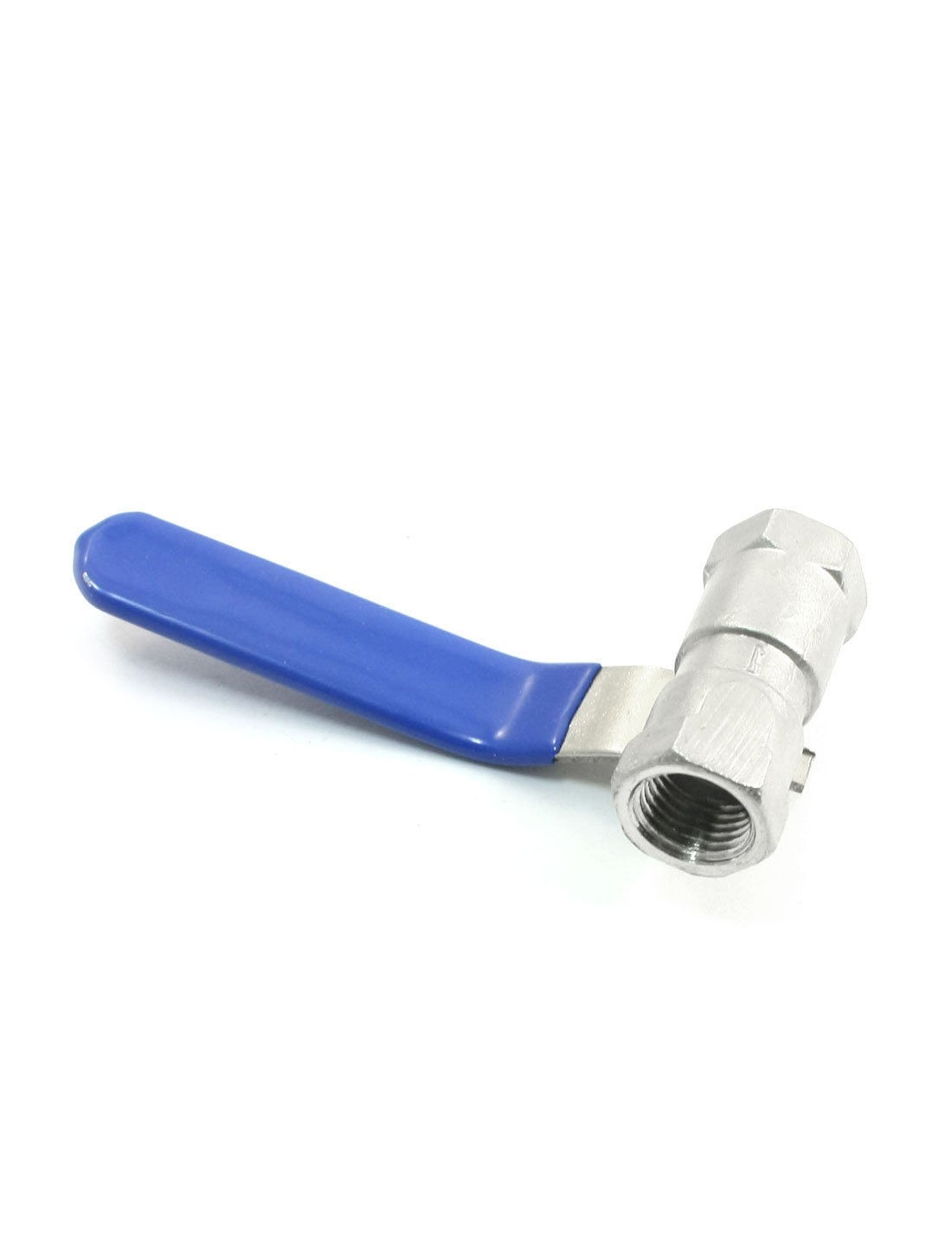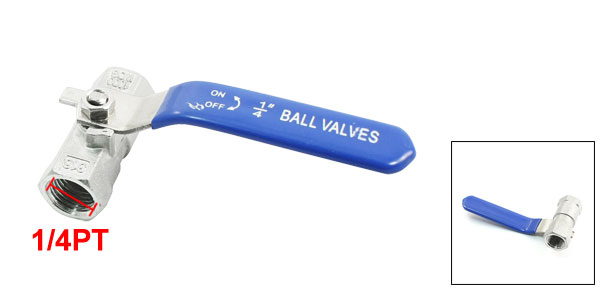 DetailsWater Pipe Connector 1/4PT Dia Female Thread ON-OFF Metal Ball Valve Fitting  Product Name Ball Valve Female Thread Diameter 12 mm / 1/4PT Overall Size (ExcludeHandle) 40 x 18 x 25 mm / 1.6" x 0.7" x 1"(L*W*H) Inlet Diameter 5 mm / 0.2" Level Handle Size (BluePart) 65 x 15 mm / 2.5'' x 0.6" (L*W) Color Silver Tone, Blue Material Metal Net Weight 62g Package 1 x Ball Valve