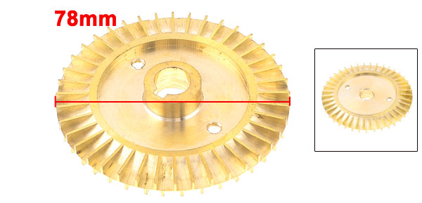 Product Name Water Pump Brass Impeller Material Brass Diameter 78mm/ 3.07" Thickness 8mm/ 0.24" Inner Hole Diameter 12mm/ 0.47" Color Gold Tone Net Weight 118g Package 1 x Water Pump Brass Impeller - Reviews