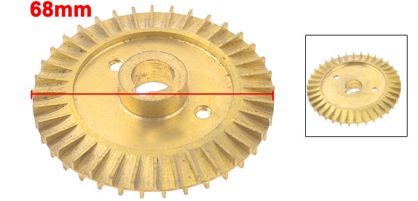 Product Name Water Pump Brass Impeller Material Brass Diameter 68mm/ 2.68" Thickness 6mm/ 0.24" Inner Hole Diameter 12mm/ 0.47" Color Gold Tone Net Weight 96g Package 1 x Water Pump Brass Impeller - Reviews