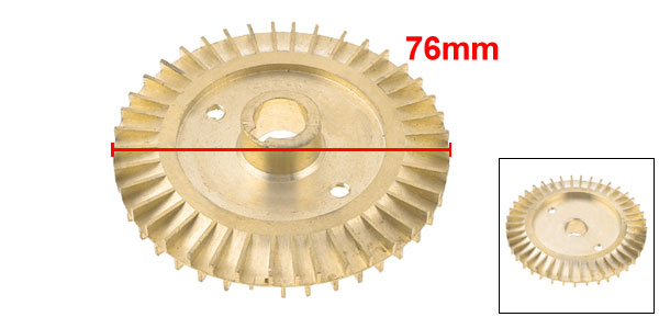 Product Name Water Pump Brass Impeller Material Brass Diameter 76mm/ 2.99" Thickness 8mm/ 0.3" Inner Hole Diameter 12mm/ 0.47" Color Gold Tone Net Weight 144g Package 1 x Water Pump Brass Impeller - Reviews