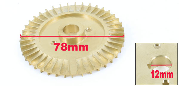 Product Name Water Pump Brass Impeller Material Brass Diameter 78mm/ 3.1" Inner Hole Diameter 12mm/ 0.5" Thickness 11mm/0.4" Color Gold Tone Net Weight 115g Package 1 x Water Pump Brass Impeller - Reviews