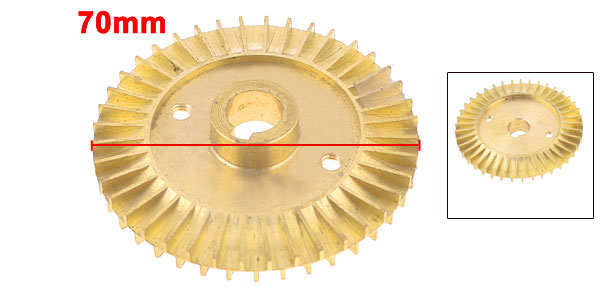 Product Name Water Pump Brass Impeller Material Brass Diameter 70mm/ 2.76" Thickness 7mm/ 0.28" Inner Hole Diameter 12mm/ 0.47" Color Gold Tone Net Weight 101g Package 1 x Water Pump Brass Impeller - Reviews