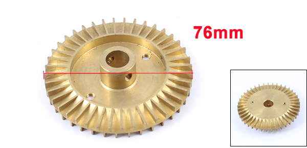 Product Name Water Pump Brass Impeller Material Brass Diameter 76mm/ 2.99" Inner Hole Dia. 11.8mm/ 0.46" Color Gold Tone Net Weight 134g Package 1 x Water Pump Brass Impeller - Reviews