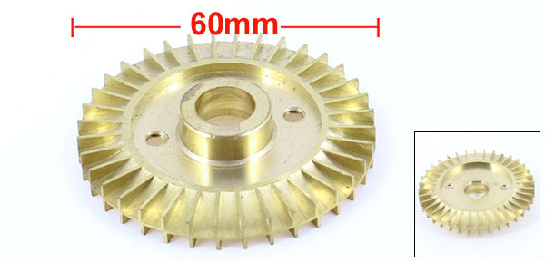 Product Name Water Pump Brass Impeller Material Brass Outside Diameter 60mm/ 2.4" Inner Hole Diameter 12mm/ 0.5" Thickness 11mm/0.4" Color Gold Tone Net Weight 70g Package 1 x Water Pump Brass Impeller - Reviews