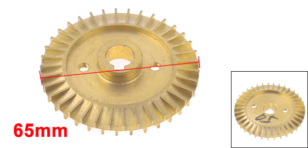 Product Name Water Pump Brass Impeller Material Brass Diameter 65mm/ 2.65" Thickness 6mm/ 0.24" Inner Hole Diameter 12mm/ 0.47" Color Gold Tone Net Weight 83g Package 1 x Water Pump Brass Impeller - Reviews