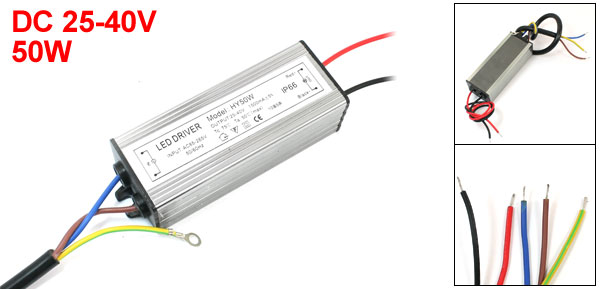 Product Name LED Driver Feature Water Resistant Input Voltage AC 85-265V, 50/60Hz Output Voltage & Current DC 25-40V 1500mA±5% Output Power 50W Protection Rank IP66 Overall Size(Approx.) 9.5 x 3.6 x 1.8cm/3.7" x 1.4" x 0.7"(L*W*T) Wire Length 27cm/10.6", 38cm/15" Shell Material Aluminum, Plastic Main Color Silver Tone, Black, Red Weight 217g Package Content 1 x LED Driver - Reviews