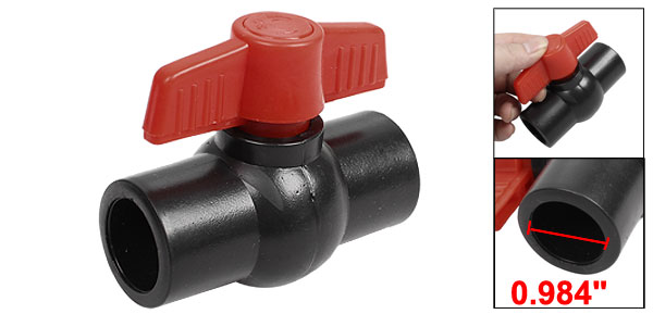 Product Name Ball Valve Ends Type Slip x Slip Slip End Size 25mm x 25mm / 0.984" x 0.984" Handle Size 7 x 2.2cm/ 2.8" x 0.9"(L*Max.W) Overall Size (Approx.) 8 x 7 x 3cm/ 3.1" x 2.8" x 1.2"(L*Max.W*H) Color Black, Red Material PPR Weight 72g Package 1 x Ball Valve - Reviews