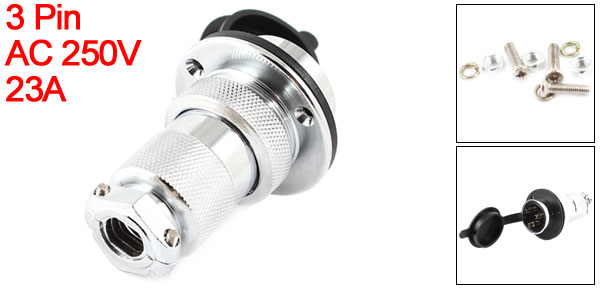 Waterproof Aviation Plug 3Pin Panel Metal Connector Adapter AC 250V 23A