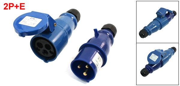 Waterproof IEC309-2 2P+E Industrial Plug Socket Blue AC 220-240V 16A Amp