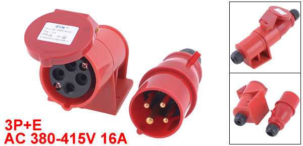 Waterproof IEC309-2 3P+E Industrial Plug Socket Red AC 380-415V 16A
