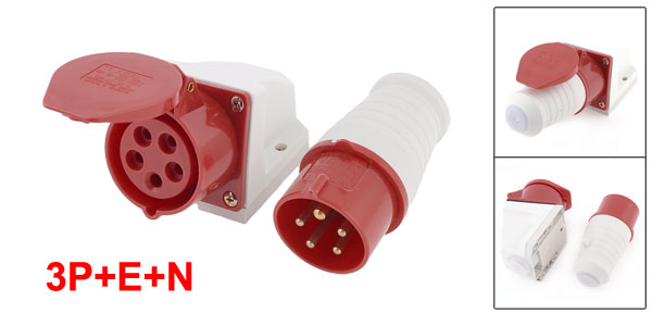 Waterproof IEC309-2 3P+E+N Industrial Plug Socket Red AC 220-380V/240-415V 16A