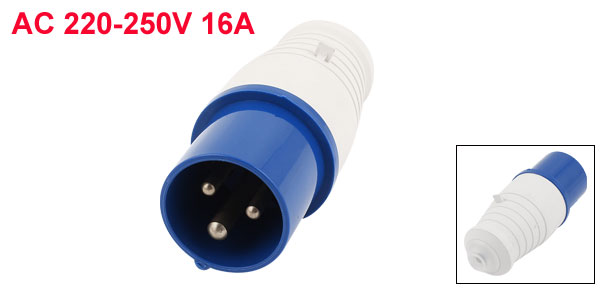 Waterproof IP44 2P+E IEC309-2 Industrial Plug Blue White AC 220-250V 16A