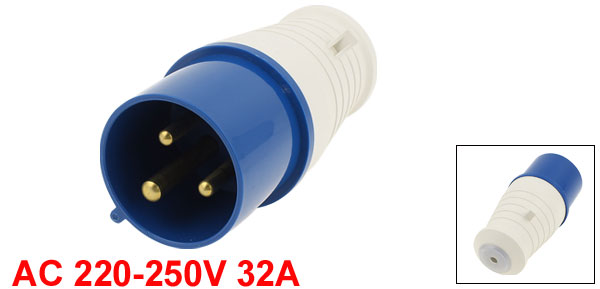 Waterproof IP44 2P+E IEC309-2 Industrial Plug Blue White AC 220-250V 32A