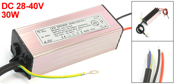 Product Name LED Driver Model KC1030A Feature Waterproof Input Voltage AC 110-260V, 50/60Hz Output Voltage & Current DC 28-40V 900mA±5% Output Power 30W Protection Rank IP65 TC 75°C TA 50°C Overall Size(Approx.) 107 x 36 x 28mm/ 4.2" x 1.4" x 1.1"(L*W*T) Wire Length 28cm/ 11", 34cm/ 13.4" Shell Material Aluminum, Plastic Main Color Silver Pink, Black, Red Weight 204g Package Content 1 x LED Driver - Reviews