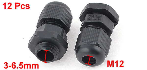 Product Name Cable Gland Model M12 Cable Range 3-6.5mm Thread O.D. 12mm / 0.47" Thread Length 8mm / 0.3" Total Size 1.8 x 3.2cm/0.7" x 1.3"(Max.D*H) Material Plastic Color Black Weight 53g Package Content 12 x Cable Glands - Reviews