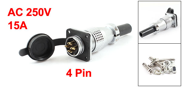Waterproof Metal 4 Pin 20mm Aviation Plug Connector Adapter AC 250V 15A