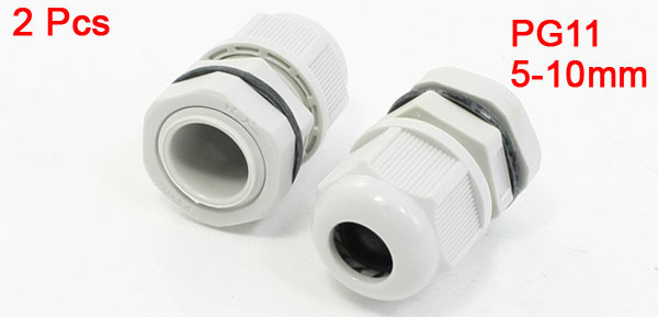 Waterproof PG11 Graywhite Hard Plastic 5-10mm Cables Gland 2 Pcs