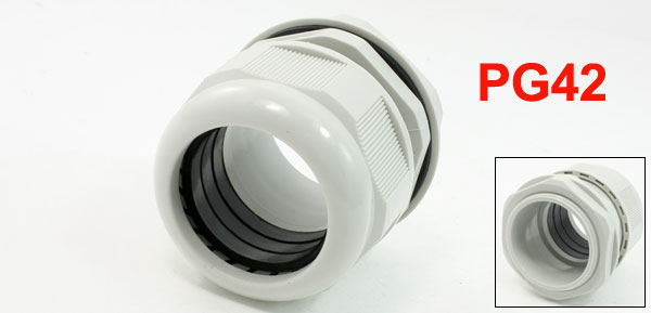 Product Name Cable Gland Model PG42 Cable Range 32-38mm / 1.26" x 1.5" Thread O.D. 57mm / 2.25" Thread Length 9.5mm / 0.37" Total Size 7 x 7cm / 2.8" x 2.8" (Max.D*H) Material Plastic Color Graywhite Weight 103g Package Content 1 x Cable Glands - Reviews