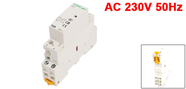 Product Name AC Contactor Model WCT-16A Rated Coil Voltage AC 230V 50Hz Rated Current 16A Ui 500V Ie AC-7a 16A Number of Poles 2 Mounting Type 35mm DIN Rail Mount Overall Size(Approx.) 82 x 18 x 68mm / 3.4" x 0.7" x 2.5"(L*W*T) Material Plastic, Electronic Parts Color White Net Weight 118g Package Content 1 x AC Contactor  - Reviews