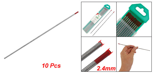Product Name Tungsten Electrode Model No. WT20 Size 2.4 x 175mm / 0.094 x 6.89" (D*L) Material Tungsten, Thorium Oxide Oxide Color Red Weight 175g Package Content 10 x Tungsten Electrode - Reviews