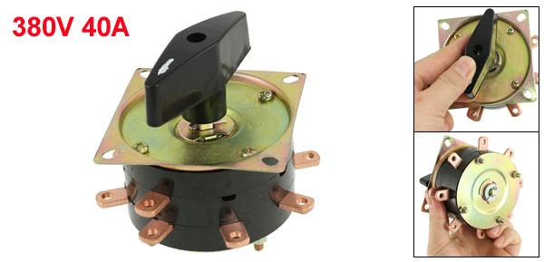 Product Name Combination Changeover Switch Model No. KDH 1-8 Frequency 50 Hz Rated Voltage 380V Rated Current 40A Terminal Screw Diameter 3.8mm / 0.15" Square Plate Size 76 x 76mm / 3" x 3" (L * W) Fixing Hole Distance(center to center) 63mm / 2.48" Pin Size 12 x 9.6 x 2.8mm / 0.47" x 0.38" x 0.11" (L * W * T) Total Height(not include screw) 80mm / 3.15" Net Weight 305g Material Plastic, Metal Main Color Black, Brass Tone Package Content 1 x Combination Changeover Switch - Reviews
