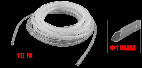 Product Name Spiral Wrap Material Polyethylene Color White Total Length(Approx.) 10 M / 32.8 Ft Outside Diameter 10 mm / 0.4'' Thickness 0.3mm / 0.012'' Weight 141g Package Content 1 x Spiral Wrap - Reviews