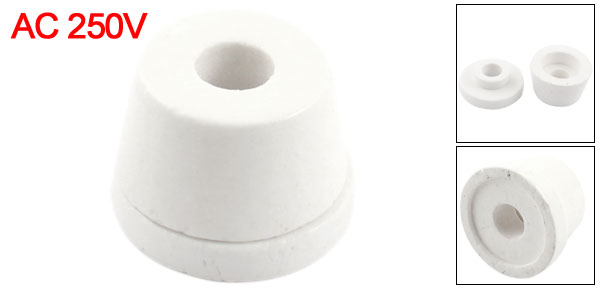 White 12mm Hole Diameter Wire Tapered Ceramic Electrical Insulator AC250V 500C