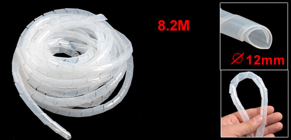 Product Name Spiral Wrap Material Polyethylene Color White Total Length(Approx.) 8.2M / 26.9Ft Outside Diameter 12mm / 0.47'' Thickness 0.5mm / 0.019'' Net Weight 173g Package Content 1 x Spiral Wrap - Reviews