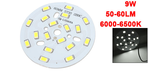 White 18 LED 9W 50-60Lm 5730 SMD + Aluminum Base Plate PCB 60mm DIY