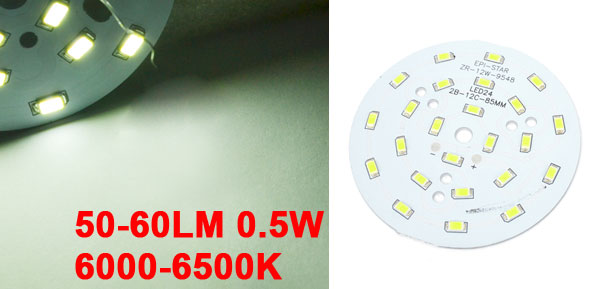 White 24LEDs 0.5W 50-60LM 5730 SMD + Aluminum Base Plate PCB 85mm DIY